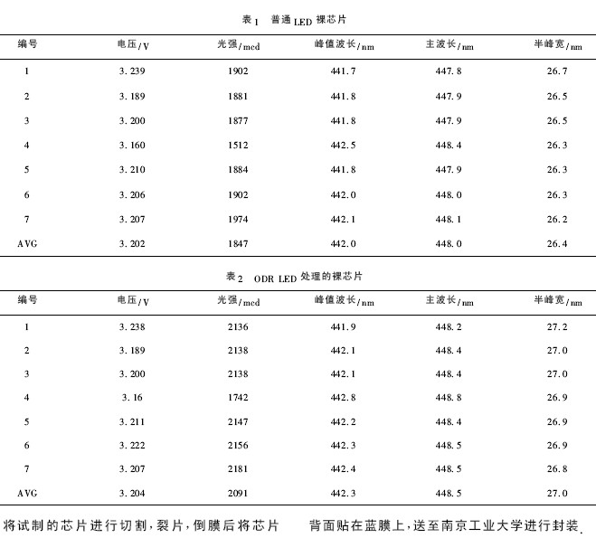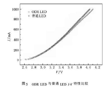 由两种LED 曲线的解析( 4) ,( 5) 式也可以看出两种LED 的电压差差距较小,说明ODR LED 处理对LED 器件电压基本无影响.