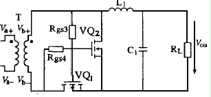 当变压器次级同名端电压为负,VQ1关断,VQ2开通。负载电流通过VQ2续流。这就是同步整流的基本原理。