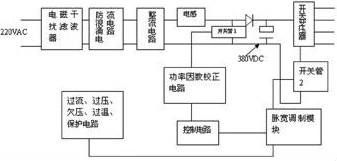 大多数升压型功率因数校正电路在其滤波电容上的电压值约为380V DC,其组成如下面框所示:
