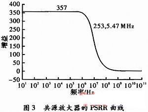 在共源电路里,可看到AVDD=1。这意味着波动从电源VDD无衰减的传递到输出端,由此发现PSRR=放大器的增益,因而为了增加电路的PSRR,这一技术更趋向于增加电路的增益。然而,该方法的主要不足在于其低的输出摆幅,其应用受到了频率较低的限制,在高频时PSRR较低。