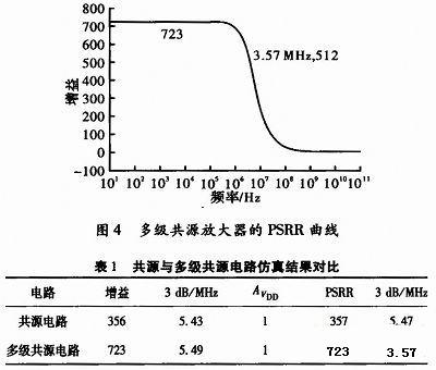 通过使用消除电源波动影响的附加电路,改善了PSRR。但由于输出阻抗上附加电路的影响,整个电路的增益依然有待于改变。从上述结果看,整个电路将获得一个增益与PSRR的平衡。
