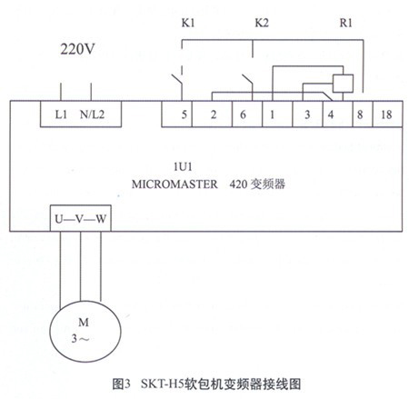 快事达粘胶实业有限公司购进的德国Profil-Clip GmbH公司生产的SKT-H5全自动软包装分装机所采用的变频器为西门子公司的420变频器,接线图如图3所示,在2009年6月的雷雨天下显示"F002”故障,表示是过电压引起,期间共烧毁了三台变频器,究其原因,是由于电源系统未有采用防雷技术所致。后采用了图1所示的电源防浪涌系统后,再没有发生同类故障现象。