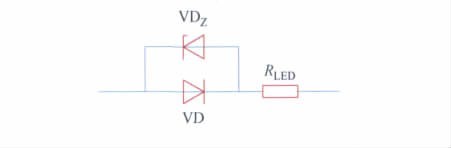 单个LED 仿真模型如图4 所示,其中VD 为理想二极管,VDZ为理想单向击穿二极管,RLED为LED等效串联阻抗。仿真中设定单向击穿二极管VDZ两端电压为: UD = 3. 0 V,设定等效串联阻抗为: RLED = 0. 35 Ω。