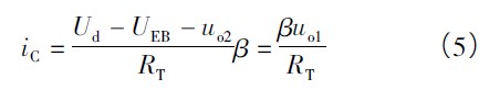 式中,UDZ为二极管压降,其值等于PNP 晶体管VT 的射极E 与基极B 之间的压降。电路选择参数使uo1 = 0 时晶体管VT 处于微导通状态,iC≈0,晶体管VT 的补偿电流为: