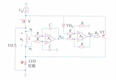 LED 灯组为n 个大功率LED 串联连接,UO =nUF为LED 灯组压降; UF为单个LED 的导通压降。