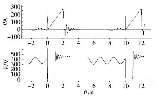 文献基本都是用梯形波来表示噪声源的,但实际中并不是每个电路中的开关器件的波形都能很好地用梯形波近似,图3所示即为一个反激电源开关管的电流电压波形,除了梯形波之外,还有电流尖峰,电压过冲和下冲等分量,会导致噪声源的频谱与梯形波有一定的不同。所以不能盲目地使用梯形波来表征噪声源,而是需要对电路进行分析或者仿真,从而得到开关器件的电流或电压波形,基于此波形再对噪声源进行建模,这样才能更精确地反映开关电源的电磁干扰。