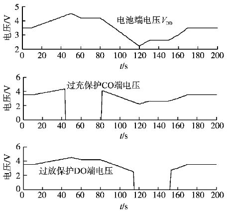 仿真模型中受控电压源的给定信号在波形大体一致的前提下可有微小差别,以代表电池个体充放电的差异。图6为电池组中单节电池电压检测仿真结果,可见采用过流放电支路均充的办法,该电路可正常工作。