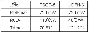 需要注意的是,NCP1529同时提供TSOP-5和µDFN-6封装,我们可以快速地确定每种封装选择对工作性能的影响。表1归纳了各种封装的功率耗散、封装热阻抗和计算出的最高环境温度。