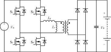 与充电模式2类似,充电变换器可以直接采用全桥或带谐振的全桥变换器。但是,由于充电模式3功率级更高,与谐振式全桥变换器相比,一般的全桥变换器必然会对应很高的峰值电流。因此,应当考虑采用ZVS或ZCS谐振全桥拓扑来有效降低损耗。