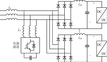 有源滤波器定额约为充电站额定功率定额的20%。在整流端一般采用直流侧电感来提高整流器的功率因数,可以选用串联或并联方式的有源滤波方案。