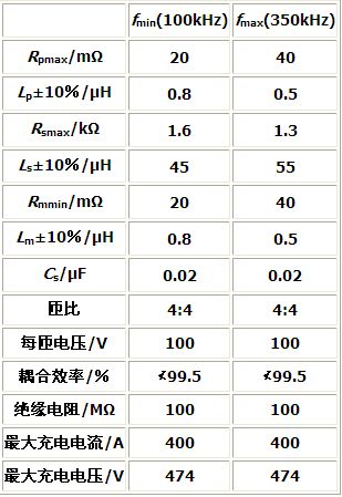 根据SAE J-1773标准给出的感应耦合器等效电路,连接电缆和电池负载的特性,可以得出感应耦合充电变换器应当满足以下设计标准。