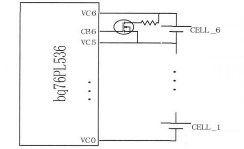 电压检测采用bq76PL536 芯片, 它同时检测3到6节电池, 测量的单只电池的电压范围为1~ 5V。