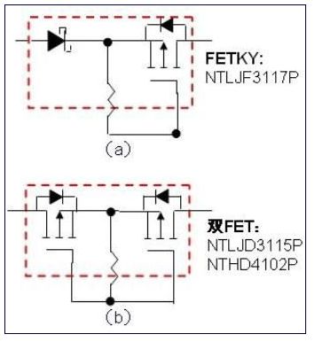而在另一方面,通过用具有低V CE(Sat)的晶体管或者具有低Rds(on)的MOSFET代替肖特基二极管,可以降低传输元件上的压降,从而符合所需要的有限电压裕量要求。例如,双FET用作充电功率元件(如图3(b)所示)就是一个更加合适的选择。在这方面,安森美半导体的NTLJD3115P和NTHD4102P就是非常适合的选择。其中,NTLJD3115P是一款-20 V、-4.1 A、μCool? 双P沟道功率MOSFET,它采用2×2 mm的WDFN封装,具有极低的导通阻抗,其0.8 mm的高度也使其非常适合纤薄的应用环境;它针对便携设备中的电池和负载管理应用进行了优化,适合于锂离子电池充电和?;さ缏酚τ眉案叨烁涸乜赜τ谩6?NTHD4102P是一款-20 V、-4.1 A双P沟道ChipFETTM功率MOSFET,同样具有较小的占位面积和极低的导通阻抗,适合于纤薄的便携应用环境。