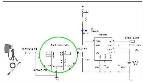图5:集成式OVP解决方案NCP348的应用电路示意图。