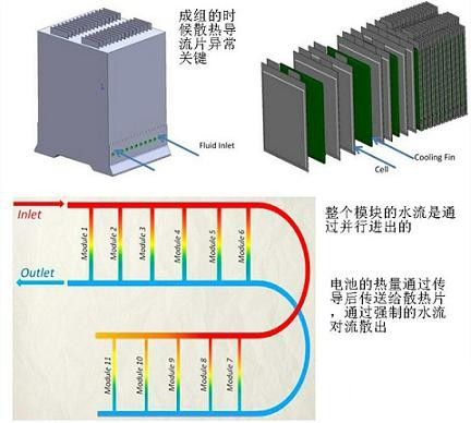 由于液体冷却只是把热量从电池组内部搬移出来,因此需要解决更多的问题,GM目前关于这块最为完善的,有兴趣可以参见VOLT的一些散热方面的图。
