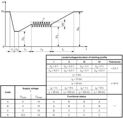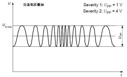 供电电压瞬间下降:模拟其他电路内的典型熔丝熔断时造成的影响。注意试验脉冲的上升和下降时间 ≤10 ms。