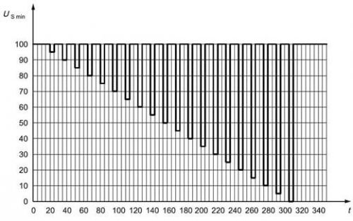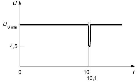 电压骤降复位性能:检验电压骤降的情况下,模块的复位性能,适用于具有复位功能的设备。供电电压以5 %速率从USmin 降到 0.95 USmin,保持5 s,再上升到USmin ,至少保持10 s并进行功能试验。然后将电压降至0.9 USmin等,以USmin的5%梯度继续进行直到降到0V,然后再将电压升到USmin。