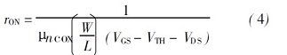 工作在线性区的MOS 管, 其导通电阻rON可由下式得出:
