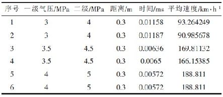 本测速系统已成功应用在双级空气炮弹射物体测速实验中,实验数据如表1 所示。