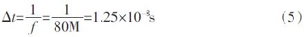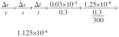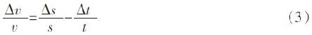 为依据国标QBT2443-1999 的规定计算。规定一级钢卷尺自零点端起到任意线纹的示值误差限为:Δ=(0.1+0.1L)mm,L 单位为m。若测试距离取0.3m,Δs 取0.03mm,待测运动物体速度为300m/s,那么将数据代入式(4)得到系统测速的最大相对误差为: