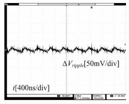 图13给出了满载情况下输出纹波电压的波形,显然,输出纹波电压的波动小,且无脉动,输出纹波电压得到了很有效的抑制。