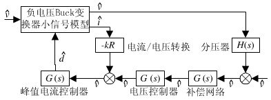 图8为电流连续模式下峰值电流控制(CCMCPM)型非隔离负电压Buck开关电源的系统框图??刂苹仿钒说缌髂诨泛偷缪雇饣妨礁霾糠帧2钩ネ缡粲诘缪雇饣?,因此设计补偿网络需要先建立包含电流控制内环的小信号模型。