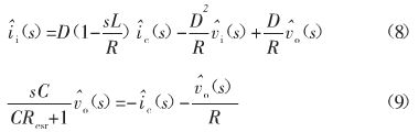根据图7所示的非隔离负电压Buck开关电源CCM小信号模型,同时将等式(7)带入化简得,CCM-CPM型非隔离负电压Buck开关电源的动态方程为:
