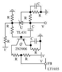 反馈控制回路采用了峰值电流控制。相比传统的电压控制,峰值电流控制一方面能很好的改善电源的动态响应,另一方面还能实现快速的过电流?;?,很大程度上提高了系统的可靠性。由于采用了电源控制器LT1935,其内部集成了峰值电路控制电路和斜坡补偿电路,非隔离负电压DC/DC开关电源反馈回路设计即转换为补偿网络设计,进而大大简化了反馈回路的设计。