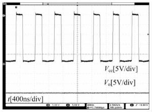 图12 满载时LT1935内部功率三极管集电极电压和输出电压波形示意图