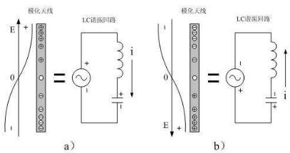 天线来回极化的工作原理可以等效成一个串联谐振电路,当天线在电场力的作用下被极化带电时,它又相当于一个电容在充电;当天线中的载流子在电场力的作用下来回移动时,它又相当于一个电感,并且在天线的周围会产生磁场。