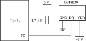 采用独特的单线接口技术,与微处理器相连仅需一根端口线即可实现双向通信,占用微处理器的端口较少,可接收大量的引线和逻辑电路;使用中不需要任何外围电路,全部传感元件及转换电路都集成在形如一只三极管的集成电路内;测温范围- 55~ +125℃,精度可达±0.5℃,可编程9~12位A/D转换精度,测温分辨率可达0.0625℃,可实现高精度测温;测量结果直接输出数字温度信号,同时可传送CRC校验码,具有极强的抗干扰纠错能力;支持多点组网功能,多个DS18B20可挂在总线上,实现组网多点测温。适应电压范围宽:3.0~5.5V,在寄电源方式下可由数据线供电;DS18B20与单片机连接如图1所示,单总线器件只有一根数据线,系统中的数据交换、控制都在这根线上完成,单总线上外接一个4.7Ω的上拉电阻,以保证总线空闲时,状态为高电平。