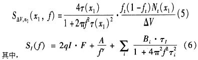 氧化层中的陷阱可发射载流子至沟道或从沟道中俘获载流子。对于近二氧化硅/多晶硅界面捕获的载流子,若其再发射,进入多晶硅栅,应用朗之万方程,假定产生几率不受再发射过程的影响,则单位体积内占据陷阱数量涨落的谱密度为