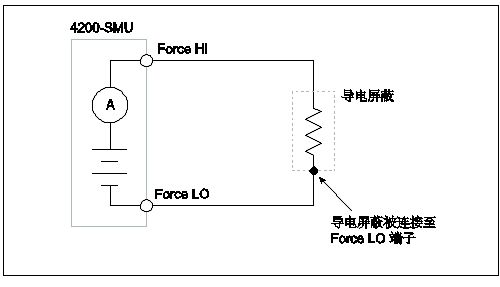· 屏蔽DUT,并将屏蔽层在电气上连接至测试电路公共端——4200-SCS的Force LO端子。