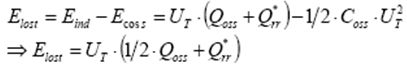 然后,这些电量将被转移至MOSFET的输出电容(图4),并在此产生过电压尖峰,继而,这些电量将被LC振荡电路的电阻部分消耗(图1,点6)。于是,可以得出关断过程中的功耗: