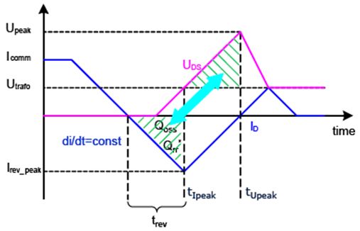 要计算MOSFET关断过程中的开关损耗,必须首先确定反向电流峰值Irev_peak: