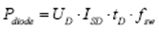 为确保两个SR MOSFET之间的互锁,以避免出现直通电流,必须实现一定的死区时间。因此,在开启一次侧之前,必须关断相应的MOSFET。这将导致电流从MOSFET沟道,转而流向MOSFET体二极管,而这又会使漏源极电压发生负电压降(图1)。这段时间被称为体二极管导通时间tD。利用下列参数,即可算出二极管功耗:体二极管的正向压降UD、从源极流向漏极的体二极管电流ISD、体二极管导通时间tD和电源转换器开关频率fsw: