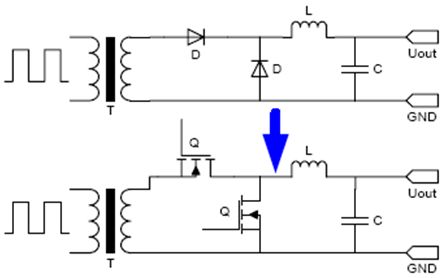 随便看一个开关电源,你都可以在电源转换器的二次侧发现一个整流级。整流级的任务是对经由变压器从SMPS的一次侧转移至二次侧的方波电源信号进行整流。SMPS通常利用功率二极管来实现整流(请参见图1)。但是,功率二极管具有0.5 V乃至更高的正向压降,并且会产生较高输出电流,因此会造成严重的导通损耗,从而大大影响整个电源转换器的能效。为了最大限度地降低这些整流损耗,可以利用最新功率MOSFET来代替二极管。最新的功率MOSFET能够大幅降低导通损耗,特别是在输出电流较高的情况下。在考虑低负载效率时,关注的焦点不是导通损耗,而是开关损耗。因为相比于二极管,MOSFET的开关损耗高得多。对系统能效的其他重要影响来自栅极驱动和旨在遏制关断过程中的过电压尖峰的缓冲网络。这是一个十分复杂的系统,因此,必须深刻理解所有参数相互之间的关系,才能优化系统能效。