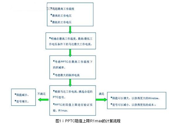 首先要确认PPTC的阻值上限R1max。下图1为PPTC阻值上限R1max的设计流程。