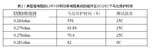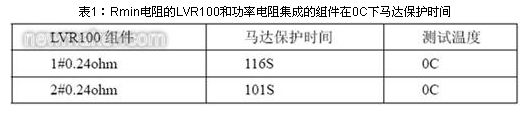 选取两片Rmin电阻0.22ohm 的LVR100和功率电阻集成的组件,下面表1为马达的?;な奔洹?br />