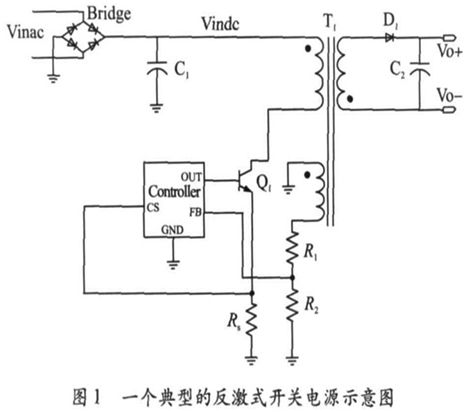 图1所示为一个典型的反激式开关电源示意图。在示意图中, 开关晶体管Q1 的集电极连接变压器T1.当控制器驱动为高电平时, Q1 导通, 能量存储到变压器T1 中。当控制器驱动为低电平时, Q1关断, 能量通过变压器T1 释放到后端。图2所示为开关晶体管开关过程中集电极电压和电流的波形示意图。