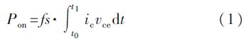 在晶体管导通后, 集电极电流从0逐渐变大, 而Vcesat不为0, 因此产生通态损耗。通态损耗可以表示为: