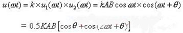 K为模拟乘法器的放大系数。进行低通滤波后滤掉交流成分得: