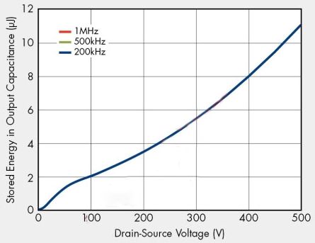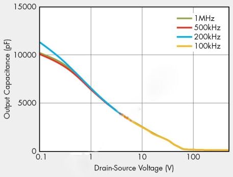 过去,许多设计人员都使用粗略假设来提供等效输出电容值,因为输出电容通常都指定为25V漏源电压。不过,传统的等效输出电容值在实际应用中却没有多大帮助,因为它随漏源电压变化,并且在开关导通/关断期间不能提供准确的储能信息。在功率转换器工作电压下,新定义的输出电容提供等效的储能,能够实现更优化的功率转换器设计。