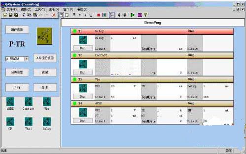2、编辑模块,用于器件选择、分类设置、调试、建立测试程序,初始测试程序的界面如图3所示: