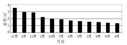图8 各月太阳能电池板对应面积排列柱形图
