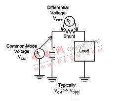 我们还要考虑到另一种共模情况:电源线路的分路开启,且接地短路的情况。这时共模电压为零。电流流动时必须进行检测,也就是说,放大器在零共模电压时也要能正常工作。