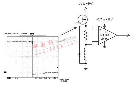最后,我们不妨考虑一下如图 4 所示的脉冲宽度调制 (PWM) 螺线管驱动器的情况。在本例中,螺线管顶部开启时达到电池电压。开关关闭时,电压将回到二极管电压降大小的负电平上。这就要求电流分路.在低至 –2V 的共模电压下仍能工作。