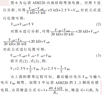 图5为电压输出采集电路,M、N两点间的电压接运放AD8220,再经运放OP1177处理后,得到输出电压VoutA、VoutB,此电压最后接色谱工作站或接AD转换器和单片机进行处理,可检测物质的成分和含量。