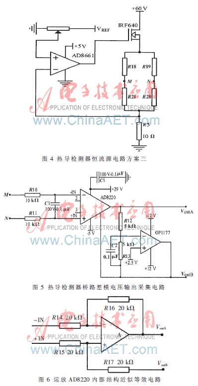 本文对三套恒流源进行分析、比较、实验,表明方案一的基线噪声、温度漂移小,优于现有色谱仪热导检测器的指标,而且电桥检测电路承受的共模电压小,有利于保护检测电路。