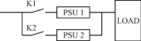 以某个输出电流为100A的系统为例来说明冗余结构运行的好处,这里只讨论1+1,2+1,3+1三种工作方式,如图2所示。各电源??榈墓ぷ髑榭鲇蒏n的闭合情况决定。